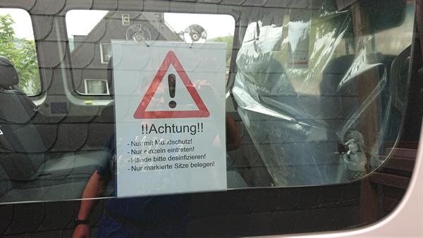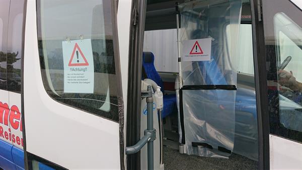 Infos zur Wiederaufnahme des Schulverkehrs in WülfrathLiebe Schülerinnen und Schüler, liebe Eltern, Sie haben bestimmt schon den Infobrief des Schulverwaltungsamtes erhalten mit den künftigen Regelungen im Schülerspezialverkehr für Wülfrath. In Abstimmung mit dem Schulverwaltungsamt haben wir als ausführendes Busunternehmen unsere Busse in den letzten Tagen zur Wiederaufnahme der Fahrten für den 04.05.2020 präpariert. An den Einstiegstüren haben wir Schilder mit den wichtigsten Informationen aufgehangen mit der Bitte diese auch zu beherzigen. Im Innenraum sind nur die Sitze jeweils aussen an den Fensterscheiben zum Platznehmen gestattet. Diese sind mit grünen POST - Its zur Orientierung versehen. Des Weiteren hängen im Bus weitere Infos von mobil.nrw aus die den Kindern helfen sollen im Umgang mit der Situation. Wie im Infobrief schon erwähnt ist der Fahrer mit einer Folie vom Fahrgastraum weitestgehend abgeschirmt. Diese Folie erlaubt es dem Fahrer laut Verordnung des Landes NRW ohne Mundschutz fahren zu dürfen. Jeder Fahrer wird das aber selbst für sich entscheiden dürfen ob er einen Mundschutz trägt oder nicht. Dies hängt vor allem davon ab wie sehr sich der Fahrer in seinem Sichtfeld und seiner Wahrnehmung des laufenden Verkehrs beeinträchtigt fühlt. Ein sicherer Transport hat da für uns Vorrang! Die Fahrten werden zu den regulären und Ihnen bekannten Uhrzeiten stattfinden. Nach Beendigung der Schulfahrten werden in den Bussen alle Griffe desinfiziert. Dies gilt natürlich auch für den Fahrerarbeitsplatz!